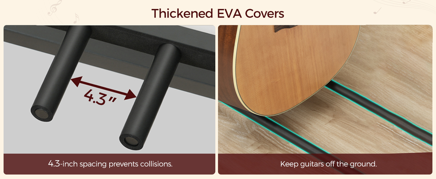 Guitar Storage Solution: This versatile guitar stand features a right-side storage area that securely holds 3 guitars, bass, ukuleles, and banjos. Both top arms and base beams feature soft EVA sponge protective covers to prevent instrument collisions