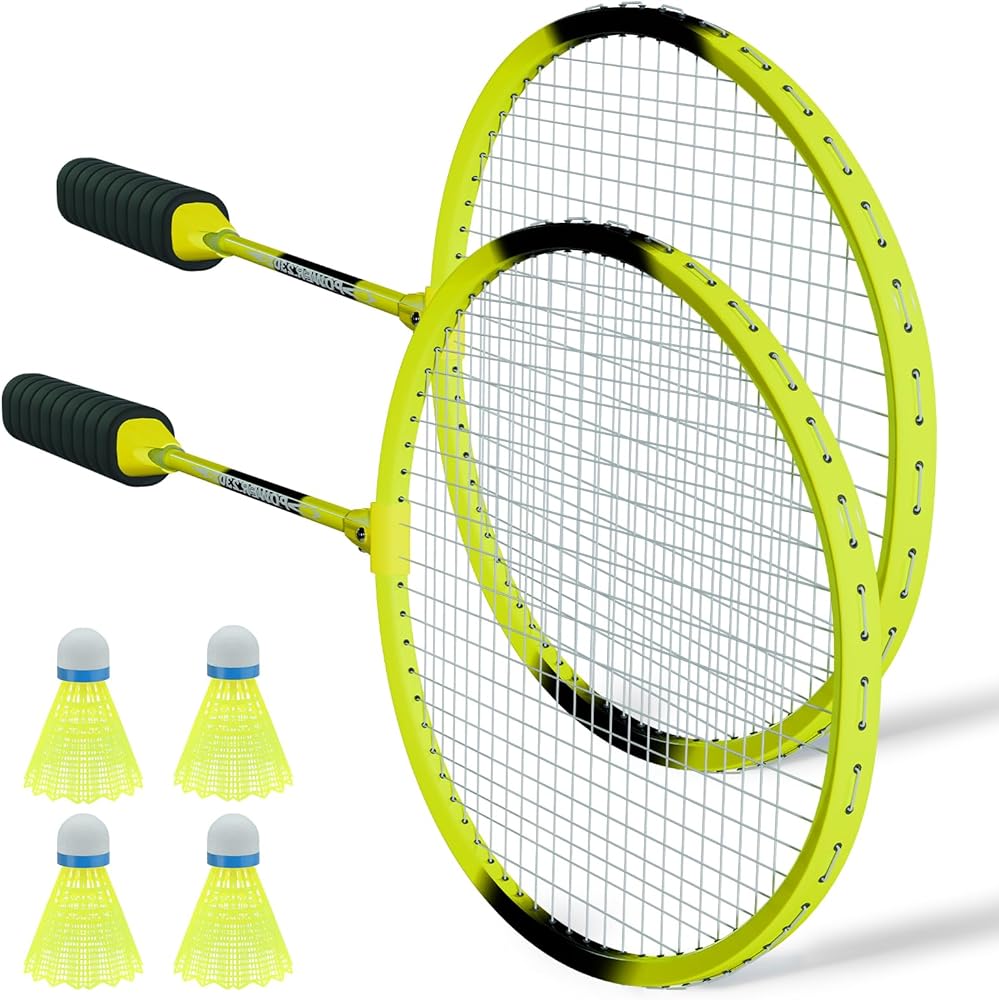 【Upgraded Badminton Racket Set of 2】Badminton racket one piece measures 25 inches in total length, featuring an enlarged sweet spot with a head size of 9.5 inches long and 7.9 inches wide for a more comfortable hitting area. Each racket weighs 98g (approx. 0.216 lbs). While most rackets on the market range from 105g to 120g, our badminton sets for backyards offers a lighter feel for more agile play. The handle features a built-in 6-inch sponge grip designed for ergonomic comfort.