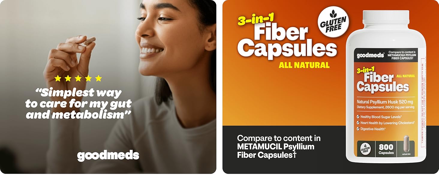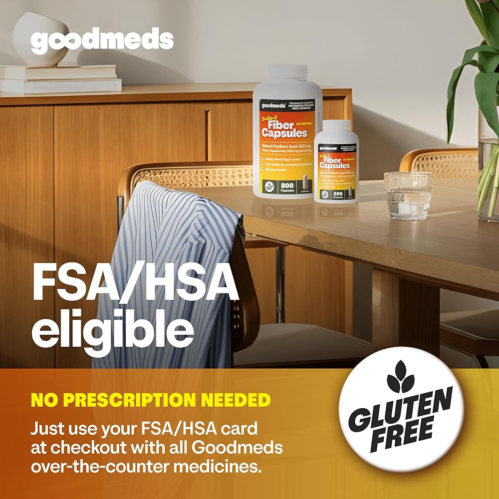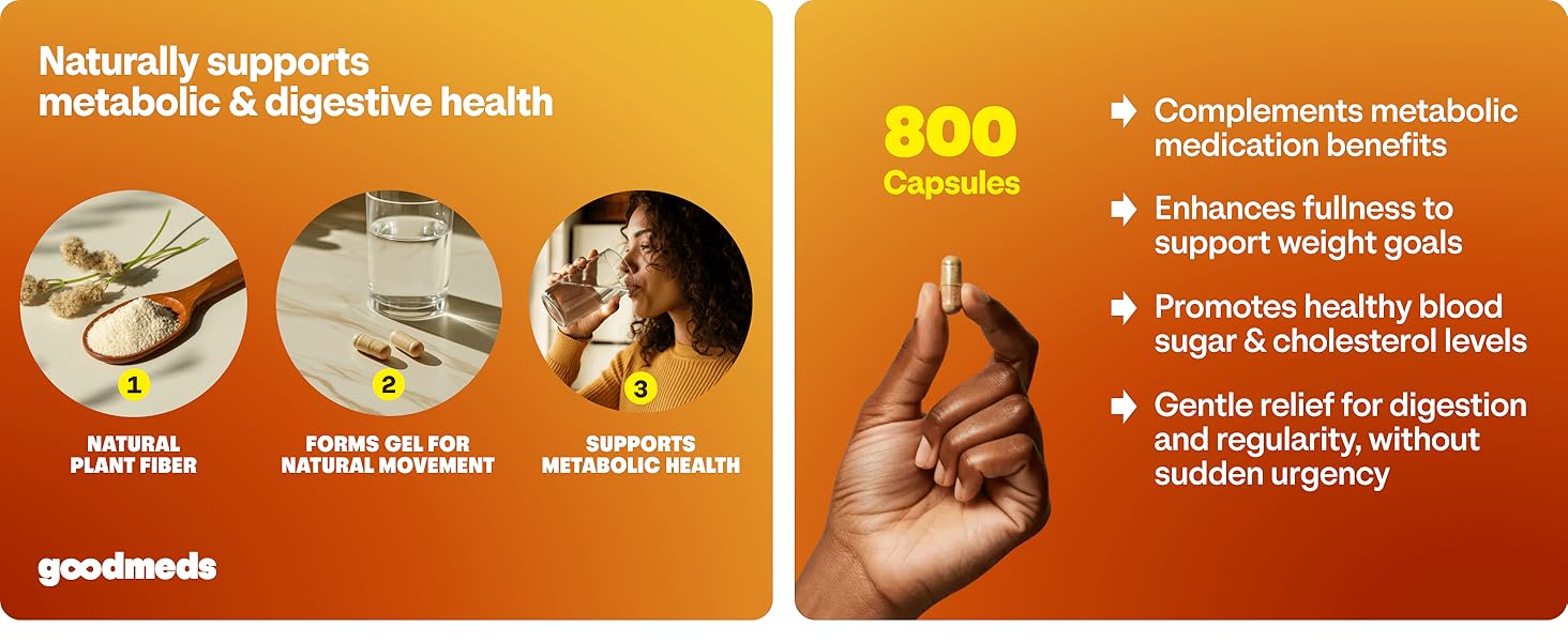 HIGH POTENCY FIBER SUPPLEMENT (800 COUNT) - Each bottle provides long-lasting colon and digestive support with 800 capsules, offering an excellent value for daily fiber intake. Take GoodMeds psyllium husk supplement for consistent digestive health support.