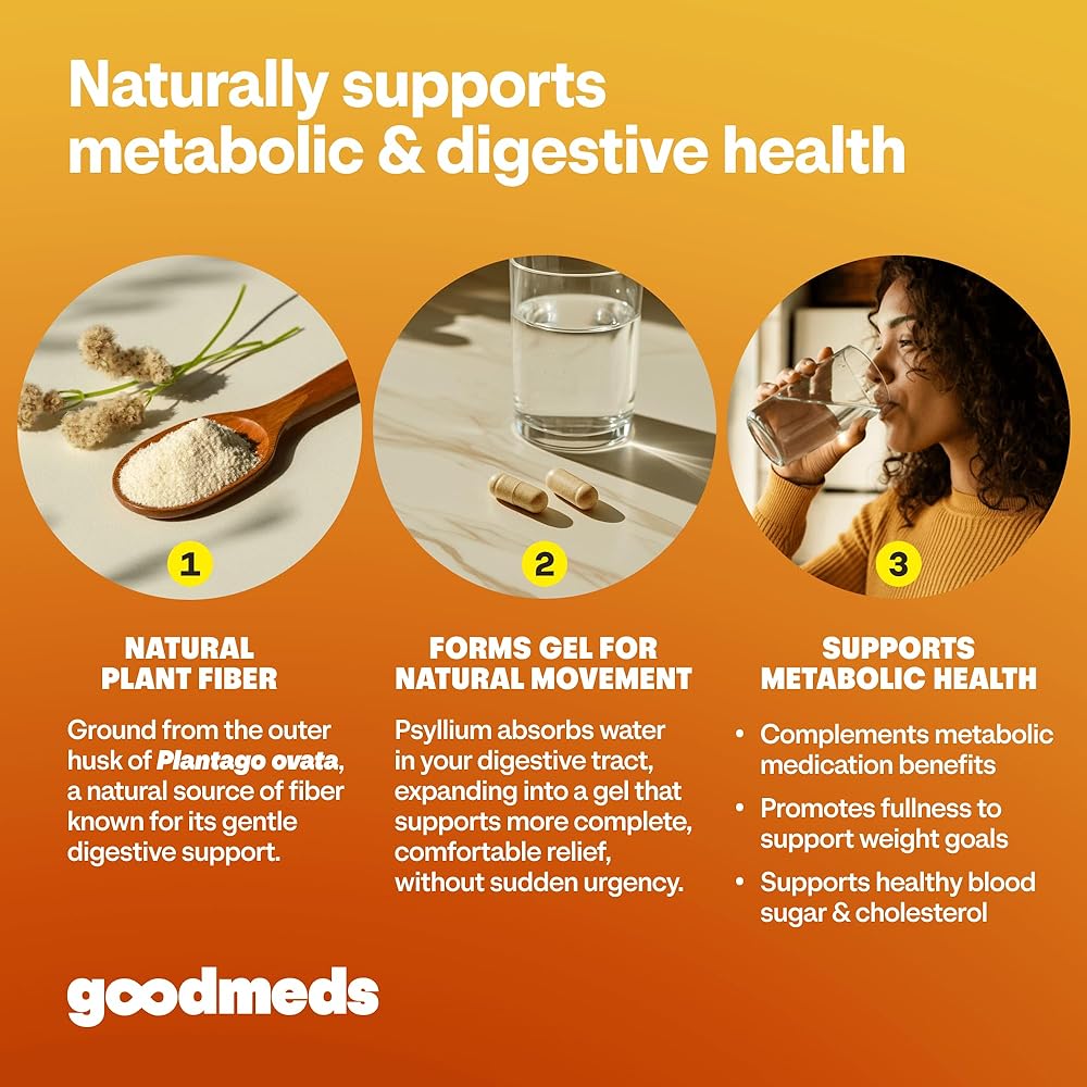 SUPPORTS HEART HEALTH & WEIGHT MANAGEMENT - Soluble fiber helps support healthy cholesterol levels, promotes feelings of fullness, and supports appetite control, making GoodMeds psyllium husk supplement ideal for support with heart health, weight management, and metabolic wellness.