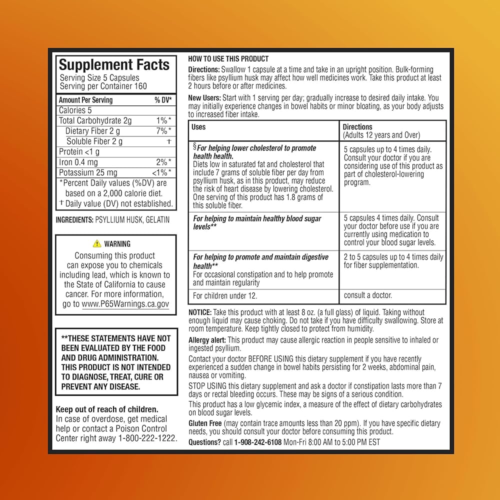 EASY-TO-SWALLOW 520MG CAPSULES - Each capsule delivers a precise dose of psyllium husk fiber without messy powders that require prep and mixing, and no strong taste. Convenient fiber capsules are perfect for daily digestive support at home or on the go.