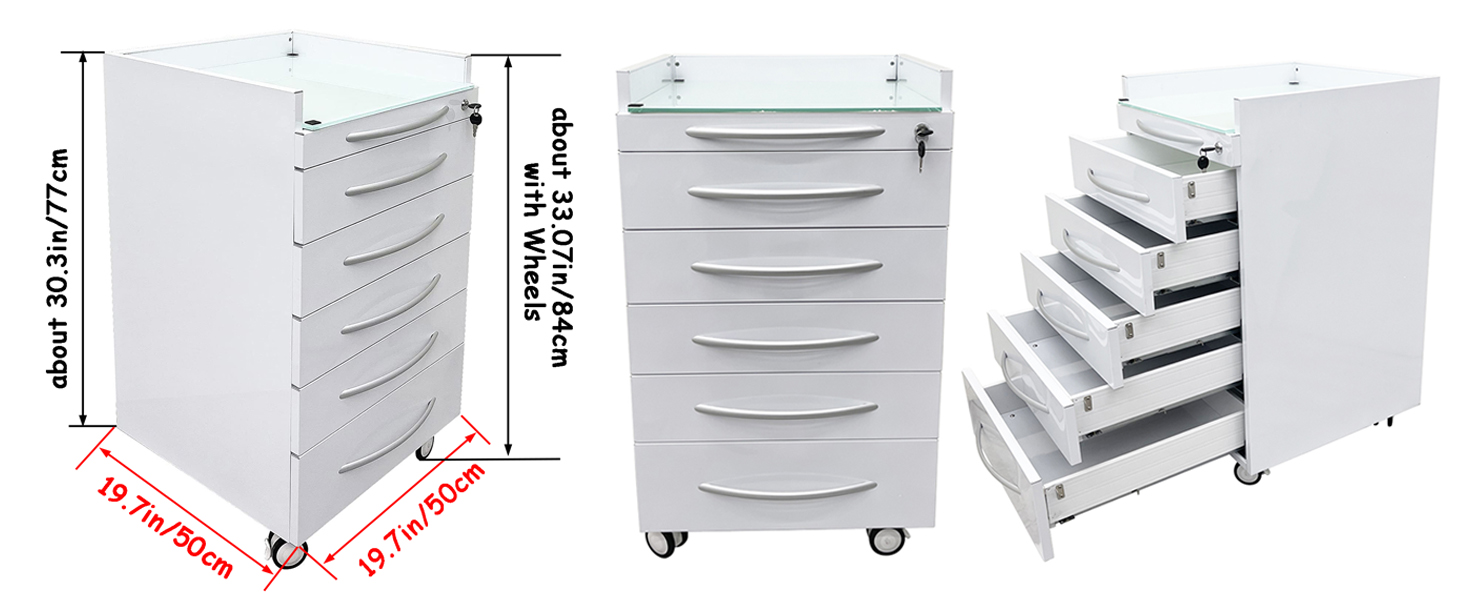 Widely Application: Uniform lock setting make storage more secure. Our 5-drawer rolling mobile cabinet is applied for dental clinics, hospitals to keep your documents, medical records, medical devices organized and ready to touch. Also can be used in schools, offices, homes, supermarkets and beauty salons.