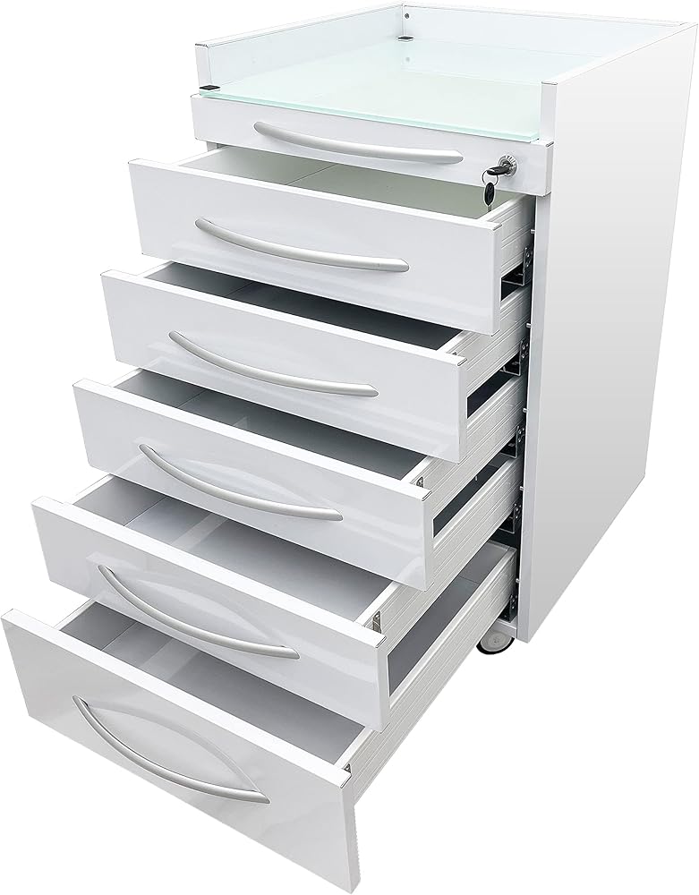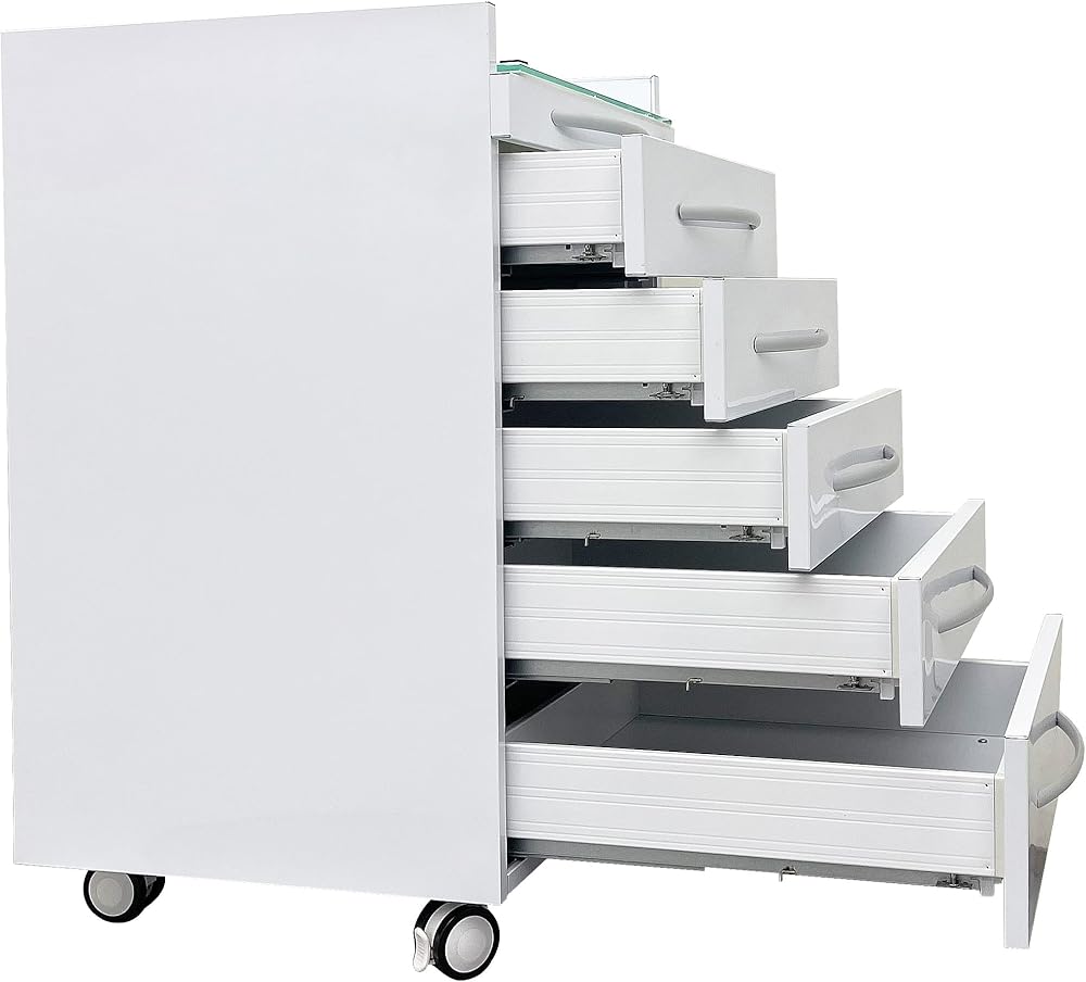 Five Drawers for Organized Storage: This medical storage cabinet features five drawers, each equipped with an easy-grip handle for smooth access. The spacious design is ideal for organizing dental instruments, medical supplies and office files, keeping everything neatly stored and within reach.