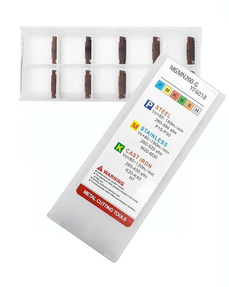 This set includes 1x MGEHR1010-2 grooving tool holder and 10x MGMN200-G indexable inserts. The inserts are precision-engineered for a perfect fit in MGEHR/MGIVR series holders, providing a reliable, all-in-one solution for your parting and grooving operations.