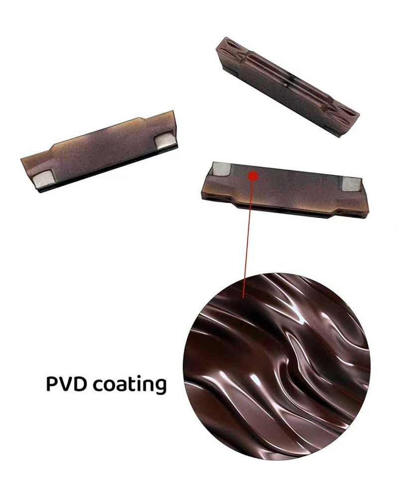 Ideal for machining stainless steel and carbon steel. The robust coating and carbide substrate offer strong impact resistance and thermal stability, making them suitable for a wide range of applications from deep grooving to severe cut-off tasks.