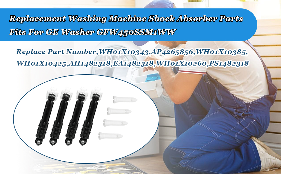 Package Contents:You will get 4*WH01X20826 Washer Shock Absorber and 4 Mounting Pins.Replace Part Number,WH01X10343,AP4265856,WH01X10385,WH01X10425,AH1482318,EA1482318,WH01X10260,PS1482318