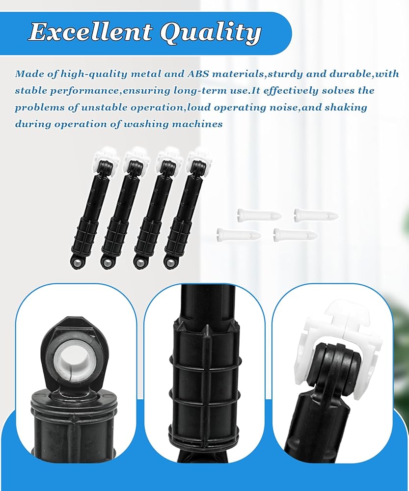 Excellent Quality:Made of high-quality and durable rubber and metal materials,it ensures a longer service life.The surface of the internal metal piston is coated with a layer of oily material,which makes the shock-absorbing rod of the washing machine have better anti-rust,wear-resistant and shock-absorbing performance