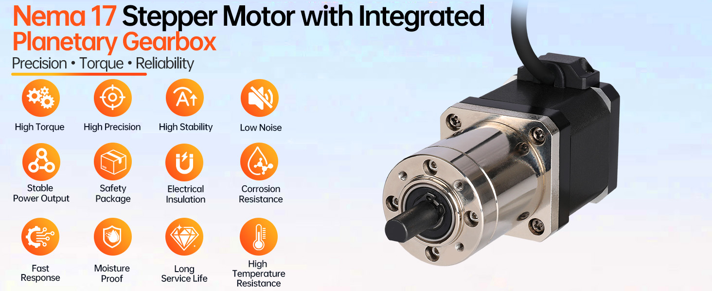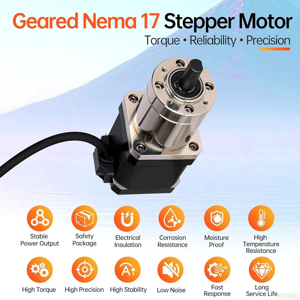 Significant Torque Upgrade: Leveraging reinforced steel cores and meticulously wound coils, this nema 17 planetary reducer stepper motor offers up to 20% increased holding torque versus standard units. Benefit from a quieter operational profile and minimal environmental disturbance.