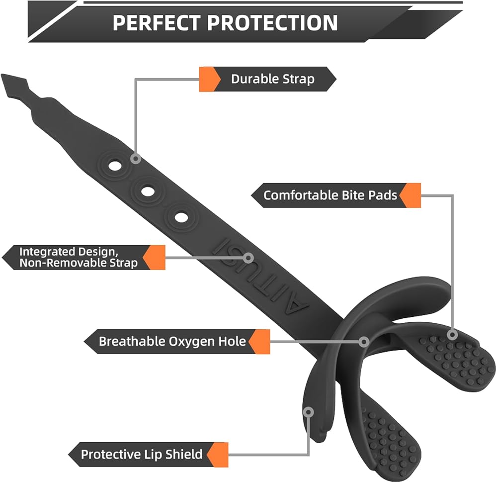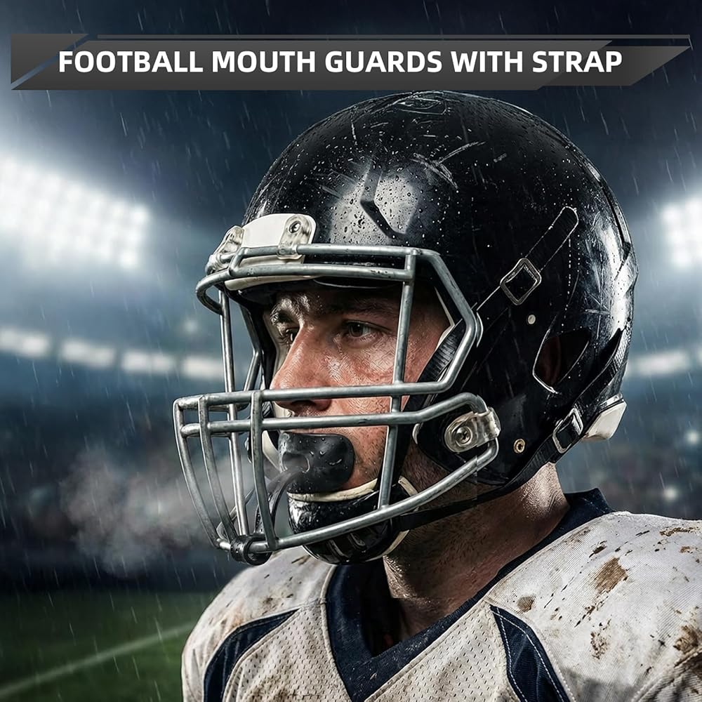 【Secure Fit & Comfortable Design】- Designed for active youth & adult players, these football mouth guards with strap feature a breathable structure for easy breathing during play. The ergonomic bite plate reduces jaw strain, while the non-slip strap ensures a snug fit. Whether for practice or games, these protective mouthpieces stay put without discomfort.