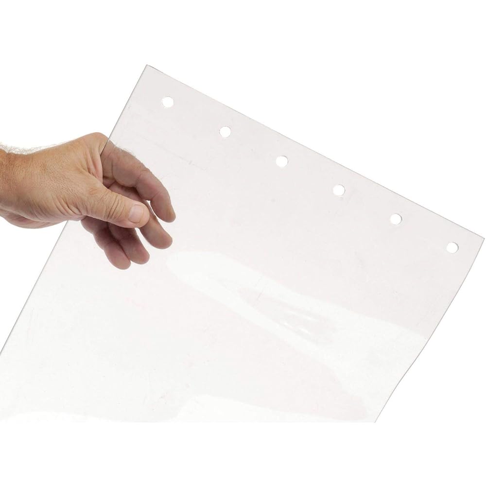 Pre-punched PVC vinyl strip can simply be cut to length and mounted to repair missing or damaged strips. UV stabilized material retains clarity for lasting visibility and increased service life. Pre-punched holes are spaced 2" center-to-center. Hardware not included. Provides excellent temperature resistance from -10° to 150°F. Fire-resistant, as well as self-extinguishing, and registered as such by the California state Fire Marshal's office., Lot of 5