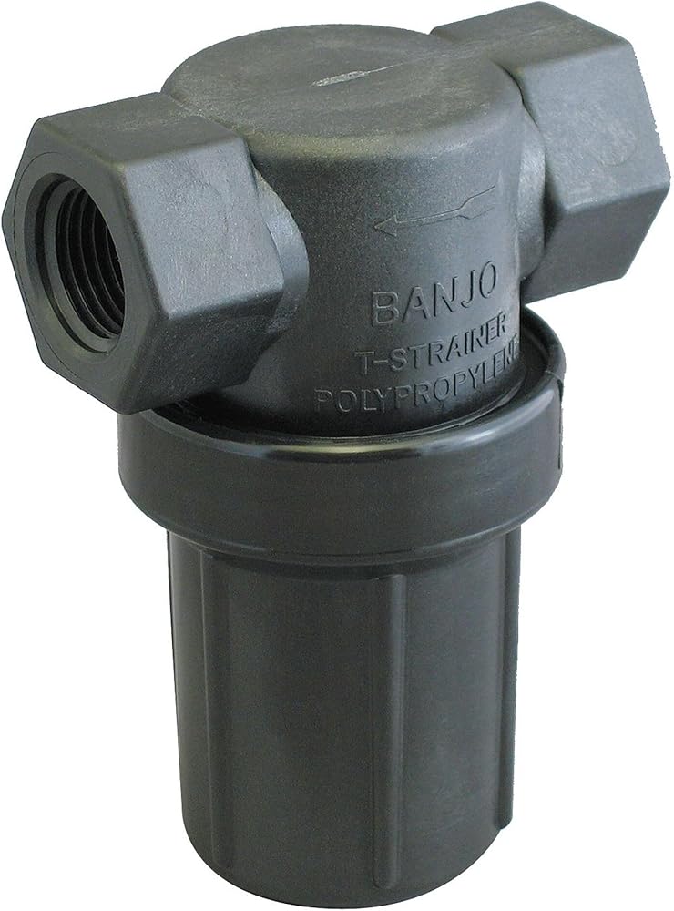 Inline Strainer Material Polypropylene Connection Type NPT Bowl Color Black Pipe Size 3/4 in Maximum Pressure at 100 deg F 206 psi Length 3 1/32 in Height 4 3/16 in Screen Material Stainless Steel Gasket Material EPDM Color Black Connection Gender Female Connection Size 3/4 in Includes Screen Yes Incoming Tube Size 3/4 in Material Grade 316 Maximum Pressure 100 psi Maximum Temperature 150 Degrees F Mesh Size 48 mesh Micron Rating 297 micron Outgoing Tube Size 3/4 in