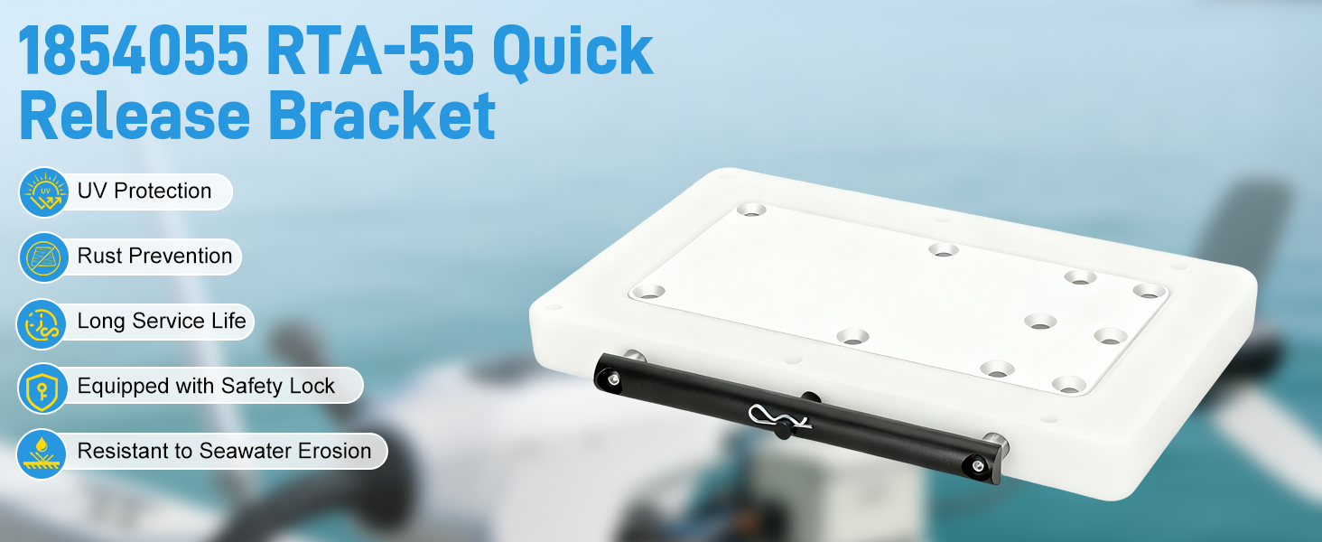 [Compatible Models] 1854055/RTA-55 quick release mount is specifically designed for heavy-duty trolling motors equipped with QUEST technology, precisely compatible with Minn Kota QUEST series models including Terrova, Riptide Terrova, Ulterra, and Riptide Instinct. Furthermore, the RTA-55 outboard motor bracket addresses the torque load challenges posed by high-thrust motors and long shaft designs. Through its scientifically engineered structural layout, this bracket effectively distributes stress, ensuring stable motor operation and structural integrity at the installation point
