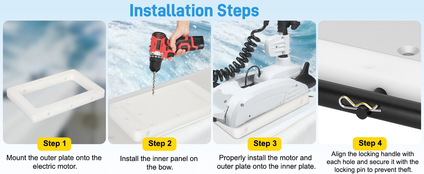 [Practical Design] The core advantage of the RTA-55 quick release bracke lies in its ability to rapidly detach and install the trolling motor, offering simple and efficient operation that even beginners can master quickly. When the motor is not required, simply release the locking handle for easy removal without complex steps or tools. To adjust the motor position, quickly detach the inner panel from the bow and install it at the designated location. The 1854055 composite bracket significantly enhances flexibility and convenience, making it particularly suitable for users who frequently install and remove equipment on watercraft