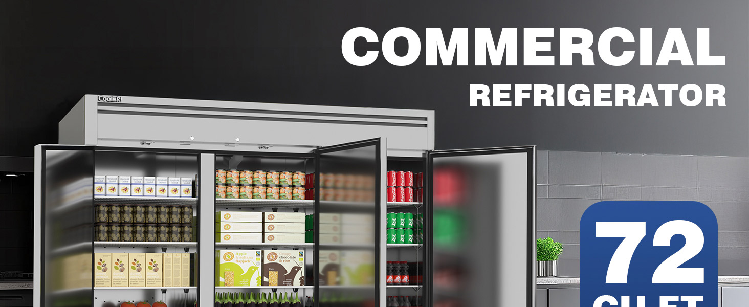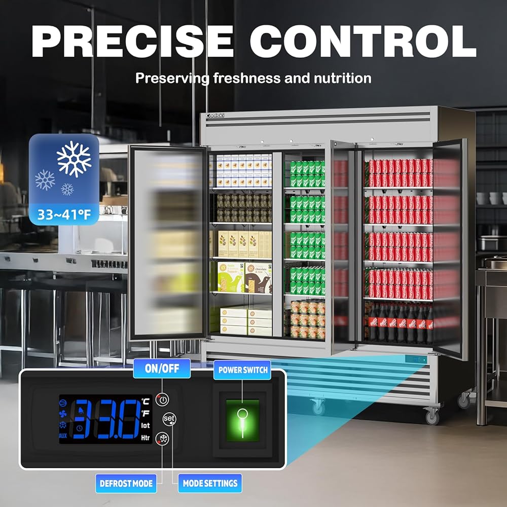 Spacious Storage: The Coolski commercial refrigerator features an impressive 72 cu.ft capacity with 12 adjustable shelves, allowing for versatile storage options and the ability to hold heavy items (up to 210 lbs each), perfect for busy restaurant and cafe environments.