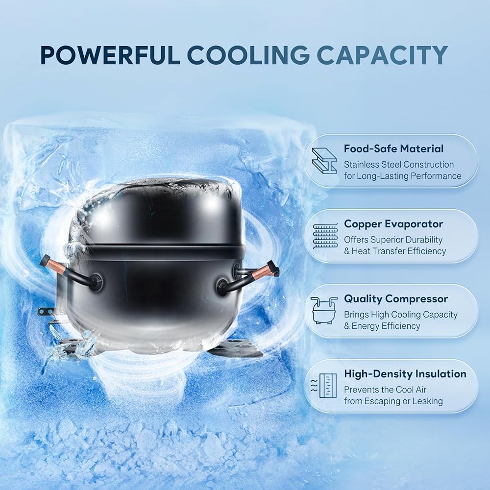 Efficient Air Cooling System: The high-quality compressor and copper evaporator work together to ensure fast even cooling and optimal temperature levels (32-50°F) throughout your salad prep table refrigerator, while the auto defrost design prevents frost or ice buildup.
