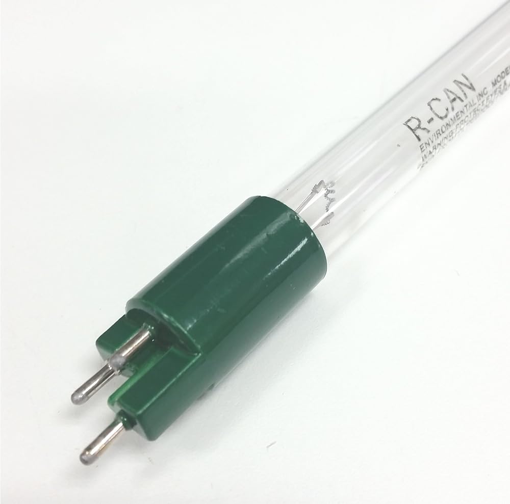 It measures about 330mm (about 13 inches), excluding the four pins on the end of the lamp. Its peak output is at 254nm (UV-C).