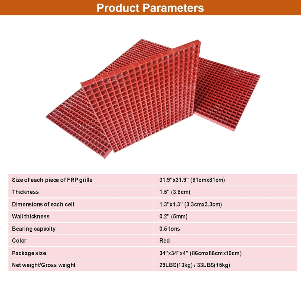 Size of each piece of FRP grille: 31.9"x31.9" (81cmx81cm)