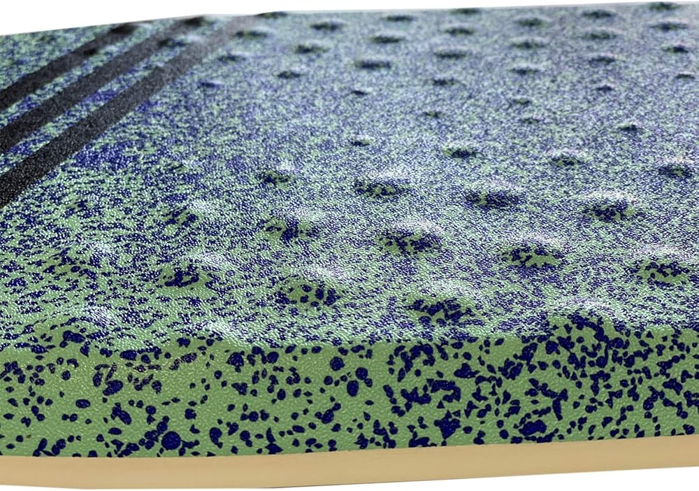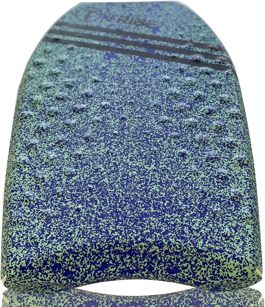 Unique design Cool blue splatter graphic and Tribe logo stand out at the beach or pool. A durable dimpled deck for extra grip. Crescent tail for sharp turns and comfort. Vibrant blue/green deck color