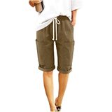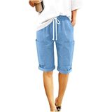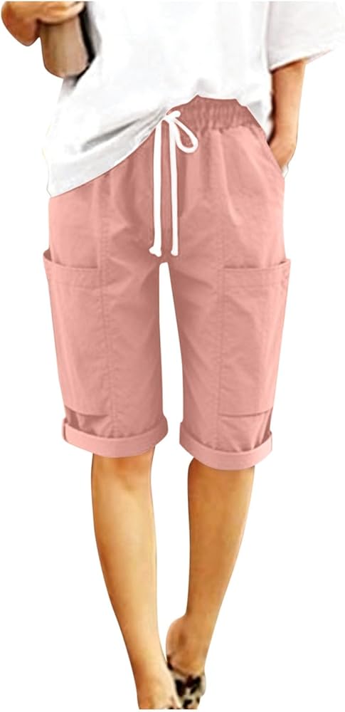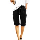[Feature]: mid/high-rise, elastic waistband, adjustable waist drawstring, loose cut. This lounge short pants are fashion and cute. It is perfect to match with various blouses. Made of breathable and comfortable cotton and linen, bermuda shorts for women, it's very cool, spring and summer beach must haves.