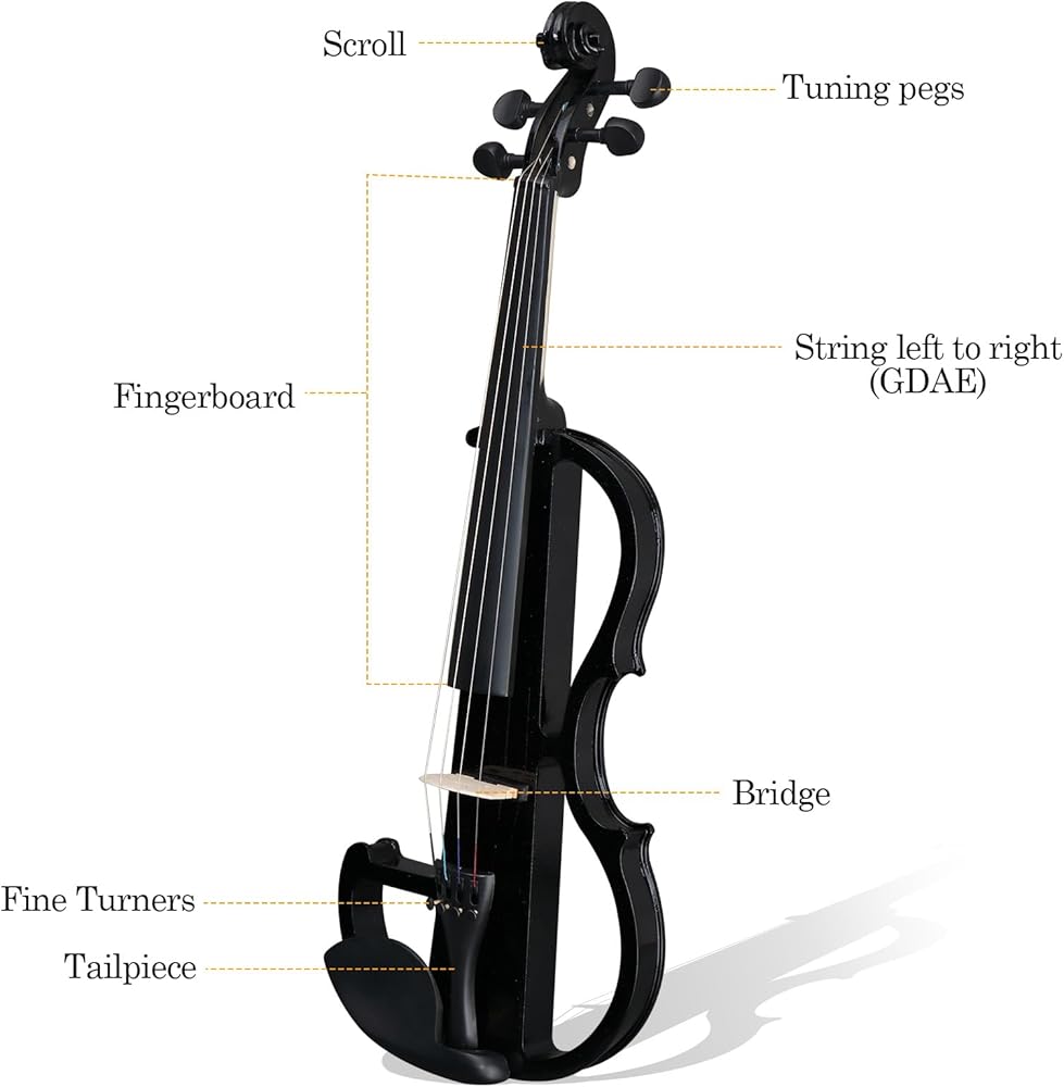 4/4 Electric Violin, Full Size Acoustic Silent Electric Violin for Beginner Adults Teens with Ebony Fittings, Case, Bow, Headphone, Rosin and Extra String (Black)