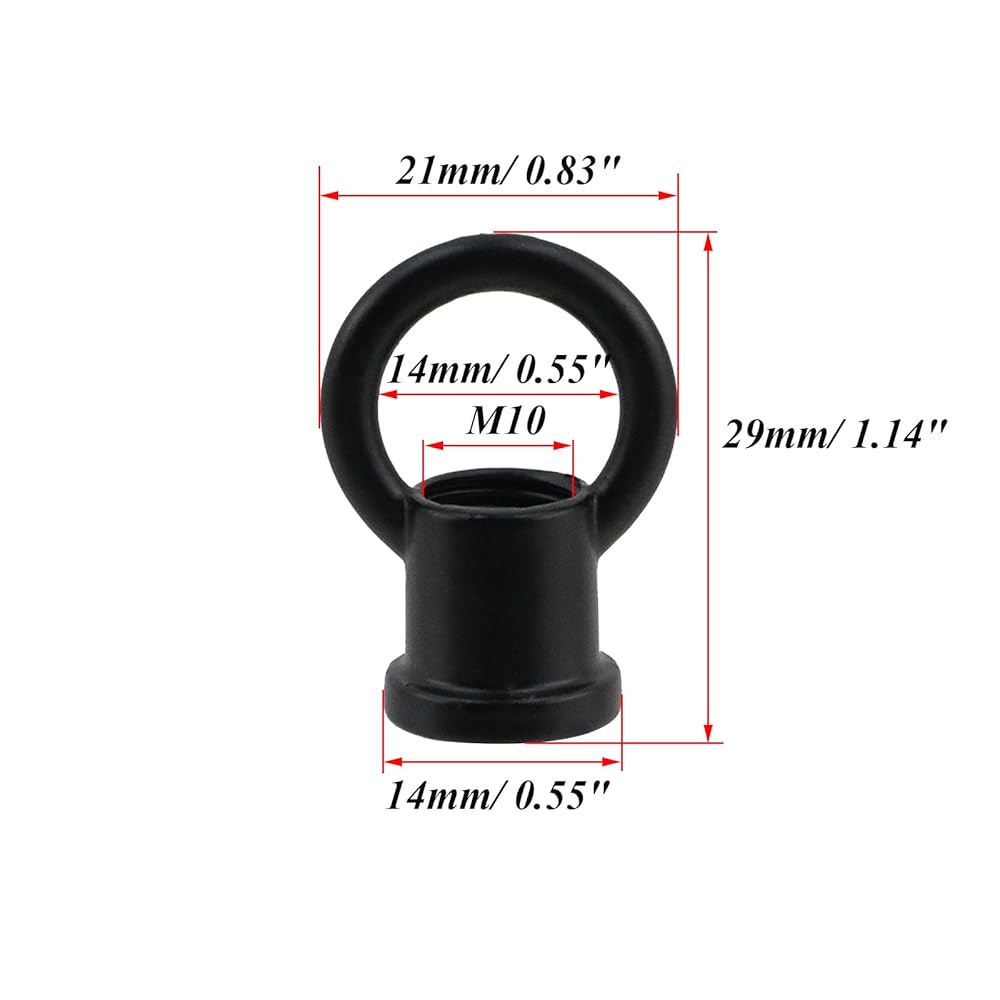 Thread Size of the Eye Nut for hanging lamp: M10*1mm; Inner Diameter: 14mm/ 0.55"; Total Size: 29x21mm / 1.14"x0.83"(L*W)