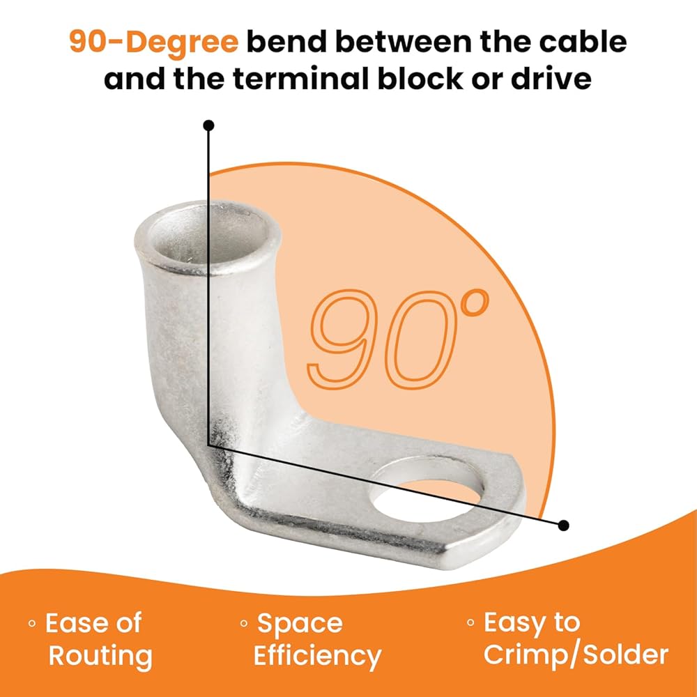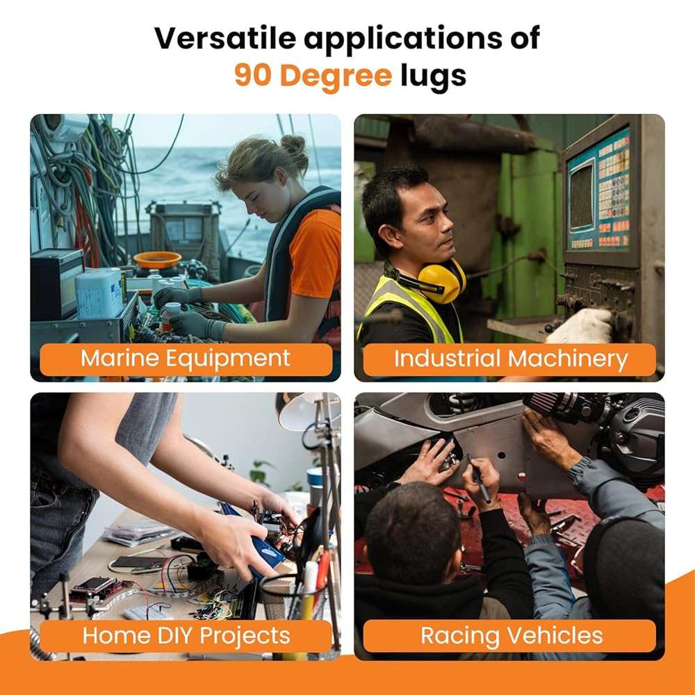 Secure and Space-Saving Connections: Selterm 2 AWG ring terminal connectors ensure strong and reliable battery connections while their heavy-duty 90° bent design allows for effortless cable routing in tight spaces, preventing power loss and ensuring a neat, professional installation.