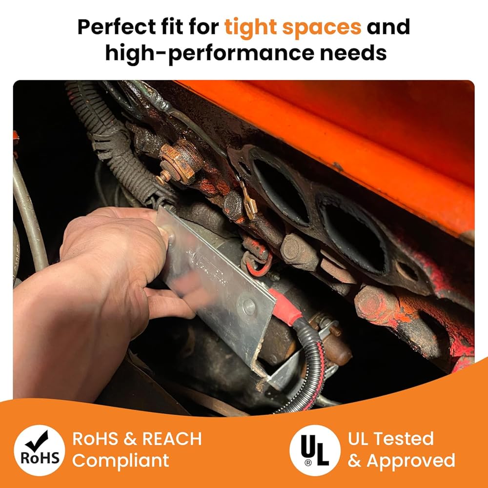 Heat-Resistant Durability: The Selterm tinned copper wire lugs kit comes with 12pcs 3:1 black & red 5/8" heat shrink tubing with adhesive. This tubing offers excellent insulation, protecting connections from heat, moisture, and corrosion, thus extending the life of your battery setup.