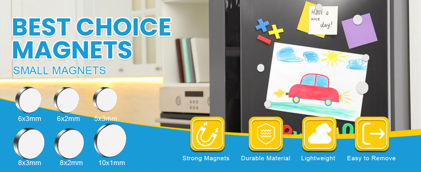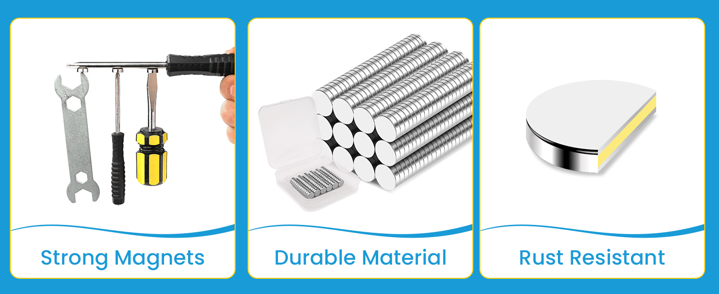 【Durable Material】The small magnet is made of brushed nickel silver material, which is durable and has high resistance to demagnetization, corrosion, and oxidation. You don't have to worry about the magnet losing tension over time.