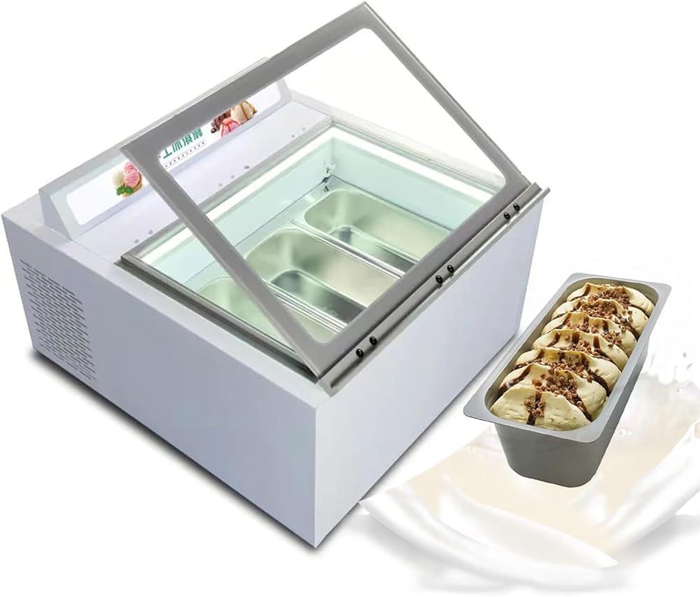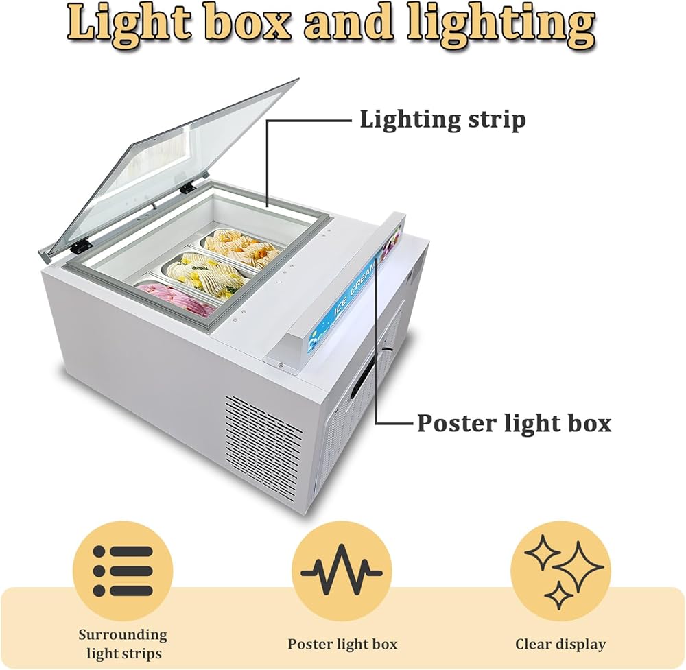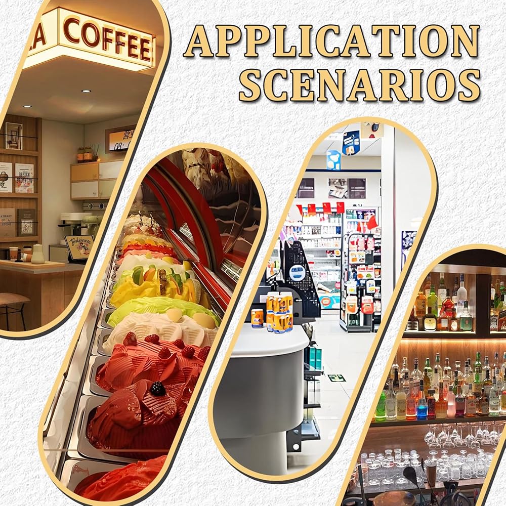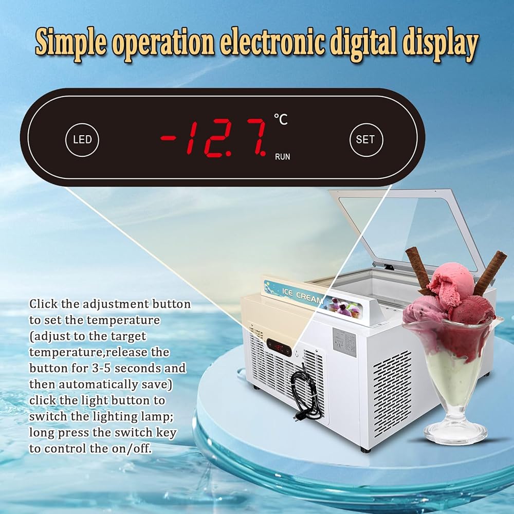 【Wide Application】 Widely be used in ice cream stores, canteen, schools, bars, cafes, milk-tea stores, restaurants, hotels, dessert shop, buffet restaurants, food van and so on, for storage and display various kinds of hard ice cream or popsicle ice cream or other food ingredients