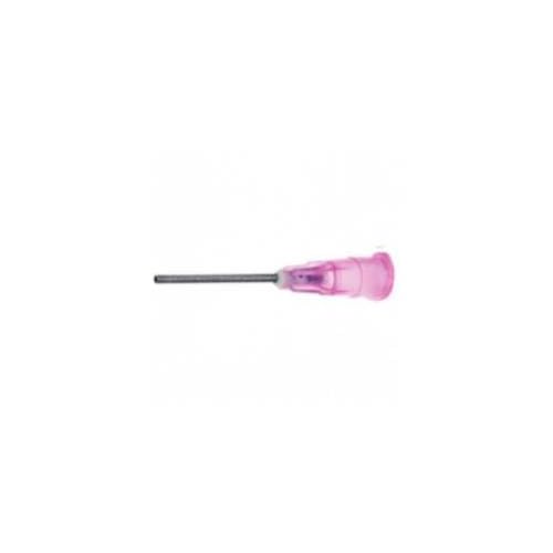 18 ga Pink Needle Tips, 3/4" Blunt-End, Bendable. Endo / Perio, Designed for use in evacuation and irrigation, Use for dispensing of flowable composites, etchants, resins and dentin primers, Universal luer-style design. 100 per cup.
