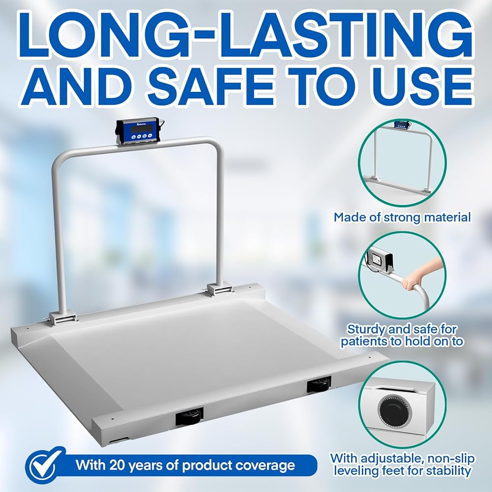 HEAVY-DUTY LONG-TERM PERFORMANCE Multipurpose platform suitable for weighing mobility equipment, large parcels, or veterinary/livestock needs; built for institutional durability with 20 years of product coverage included.