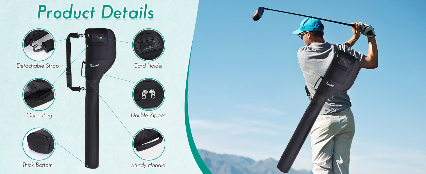【Large Capacity With Pocket】Large capacity of the mini golf carry bag can hold up to 3-7 golf practice clubs. There are 1 big side pockets outside the golf bag for you to put the ball, gloves, divot tools, bottle or anything else you may need during your round, as well as a card holder designed to hold your cards.