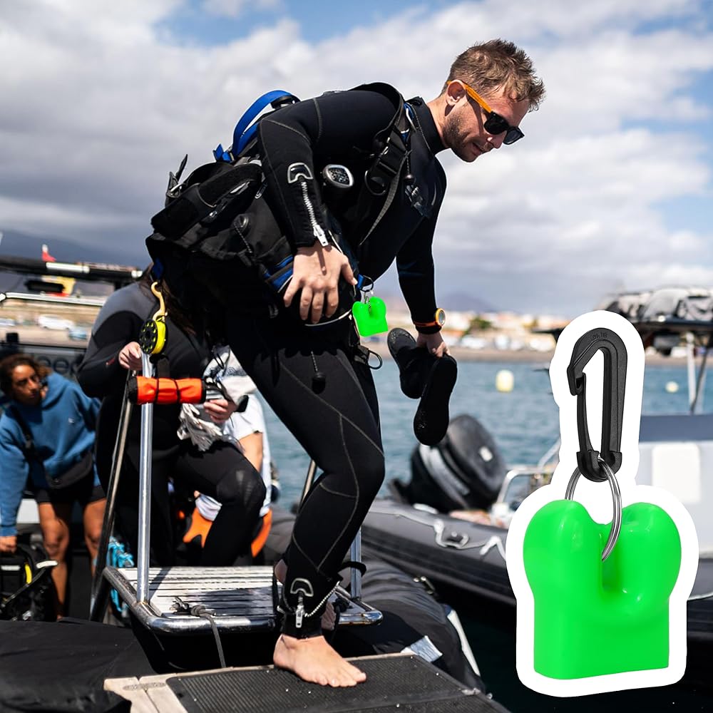 QUICK & SECURE CLIP ATTACHMENT: The practical black clip-on design with a 316 stainless steel split ring offers fast and secure attachment, preventing accidental loss and allowing easy access to your regulator cover — perfect for divers who value convenience and use gear.