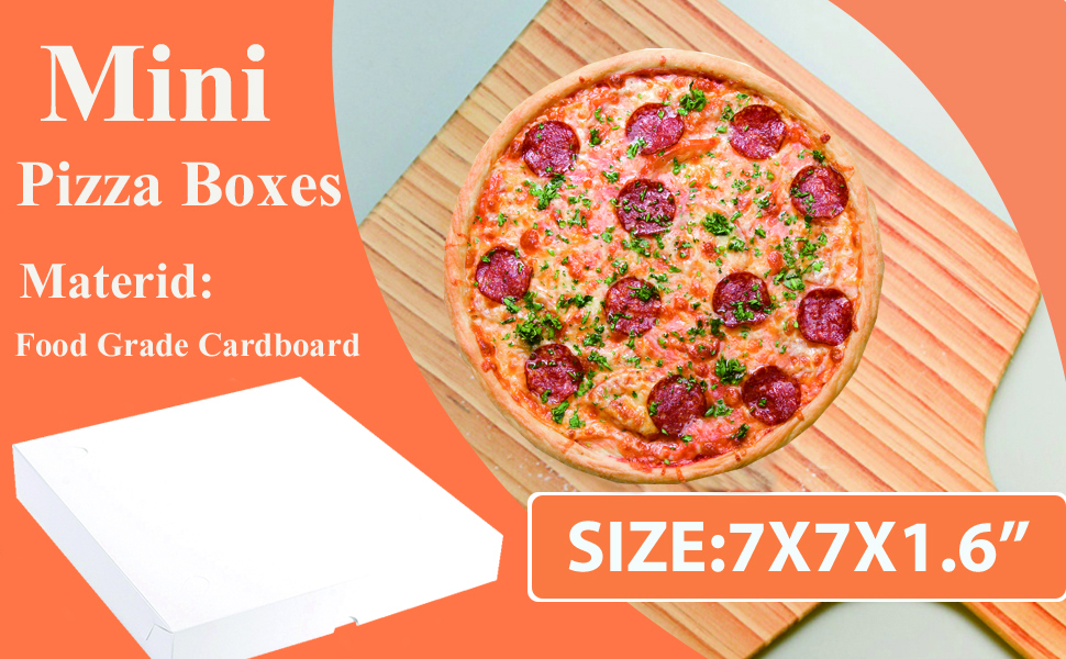 Size:7x7x1.6 Inches,20 pcs pizza boxes.The boxes for cookie, macaron, small pies ,Elf pizza,party favors, crafts, chocolates, handmade soaps, candies and other small gift wrappings.