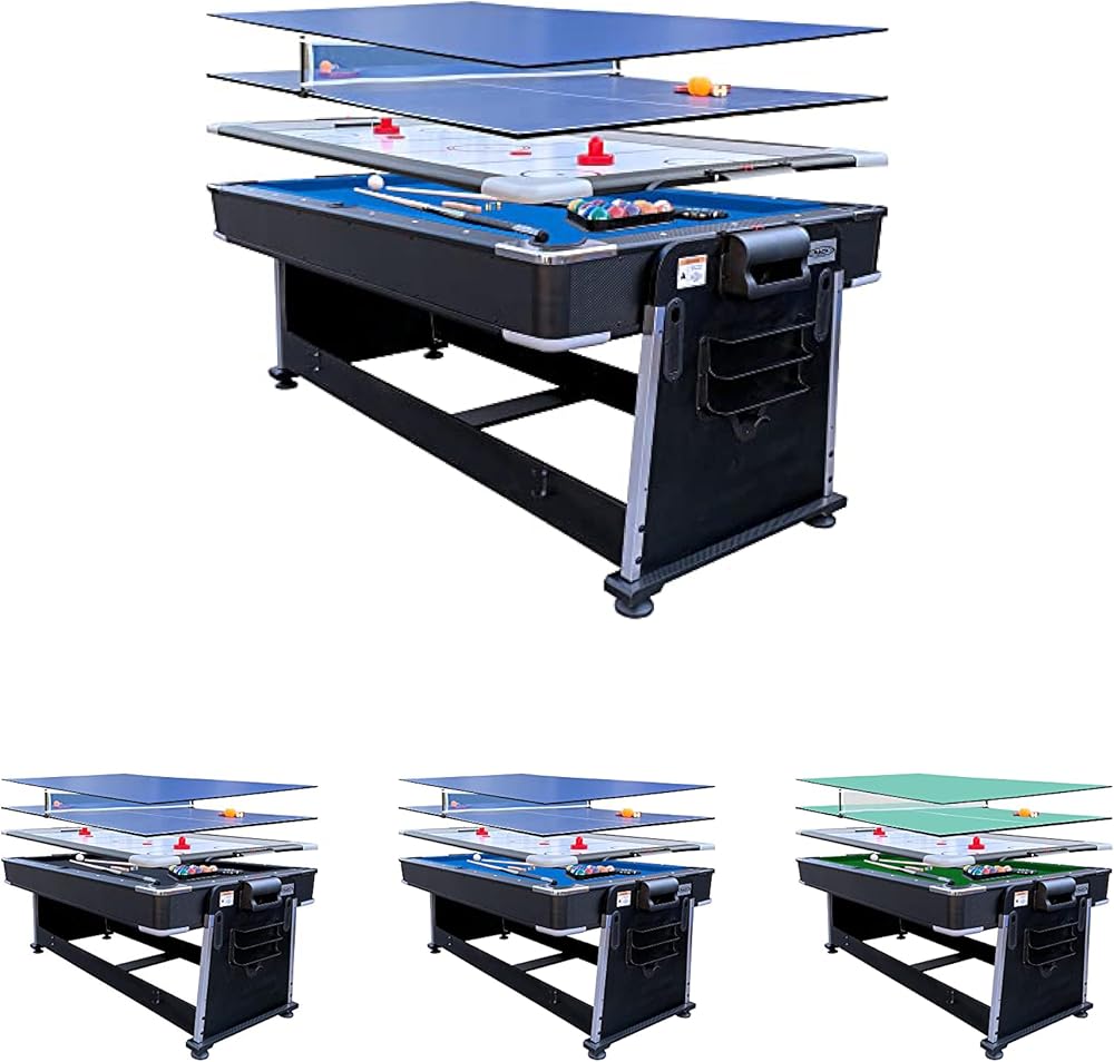 The RACK Triad 7-Foot 3-in-1 Multi Game Swivel Table is one of a kind in its own element of game tables! The ability to switch games back and forth in seconds makes the Triad 3-in-1 the most versatile game table in the RACK collection and gives you and your family the best experience. No need to buy 3 tables! Save space and enjoy all three games, a game of Billiards, Table Tennis match, and a Hockey match! Simply turn the table to play Hockey or set the 2 halves of the conversion top on the Billiard table and attach the post and net for Table Tennis.