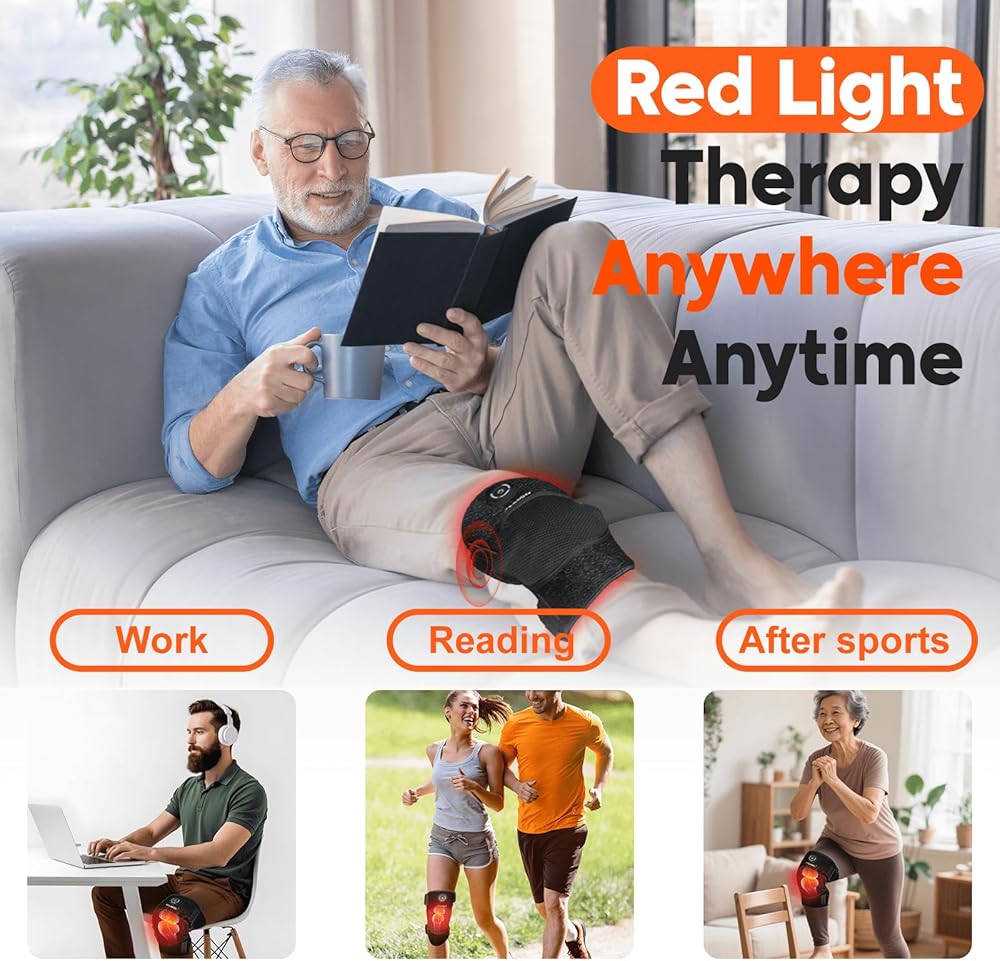 【Pro Red Light Therapy Knee Brace】The Infrared knee pads integrates 660nm visible red light with 850nm invisible near-infrared technology for multi-level pain relief. The 660nm red light is efficiently absorbed by the skin to promote collagen production, improve skin texture, and accelerate wound healing. The 850nm near-infrared light penetrates deeply into bones, organs, and joints to enhance muscle recovery while reducing inflammation and joint pain