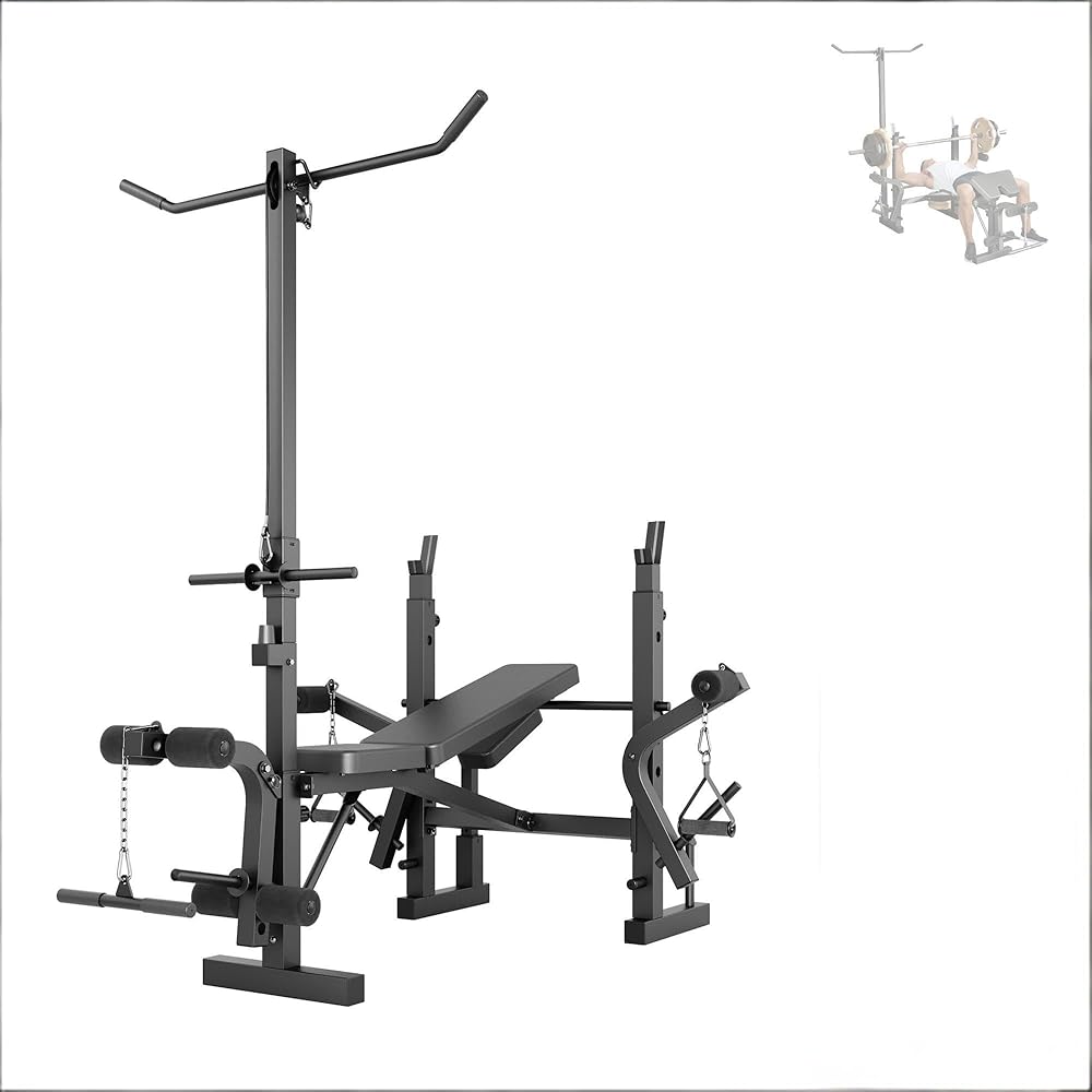 Heavy Duty 4-in-1 Adjustable Weight Bench Set for Home Gym, 900Lbs Capacity Multi-Function Workout Bench with Leg Developer & Extension, Barbell Rack, Butterfly Arms for Full Body Exercises