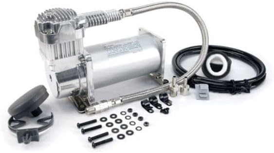 400C is a 33% duty cycle compressor that works quickly and efficiently putting out 2.62 CFM/12V and 2.33 CFM/24V flow at zero PSI head pressure. Features include a standard 1/4 NPT stainless steel braided leader hose with inline check valve and insulated wiring for simple installation. Features. Thermal Overload Protector. Check Valve. Vibration Isolators. Mounting Hardware. Stainless Steel Braided Leader Hose. Air Line for Remote Mount Air Filter. Remote Mount Air Filter Assembly. 2 Replacement Air Filter Elements. Installation InstructionsSpecifications. Voltage 12Volt / 24Volt. Duty Cycle 33% 100 PSI. Max. Working Pressure 150 PSI. Max. Air Tank Size 5.0 Gallon. Max. 12V Amp Draw 30Amps. Max. 24V Amp Draw 15 Amps. Ingress Protection Rating IP67. Max Ambient Temp 158F. Min Ambient Temp 40F. Weight 10 lbs