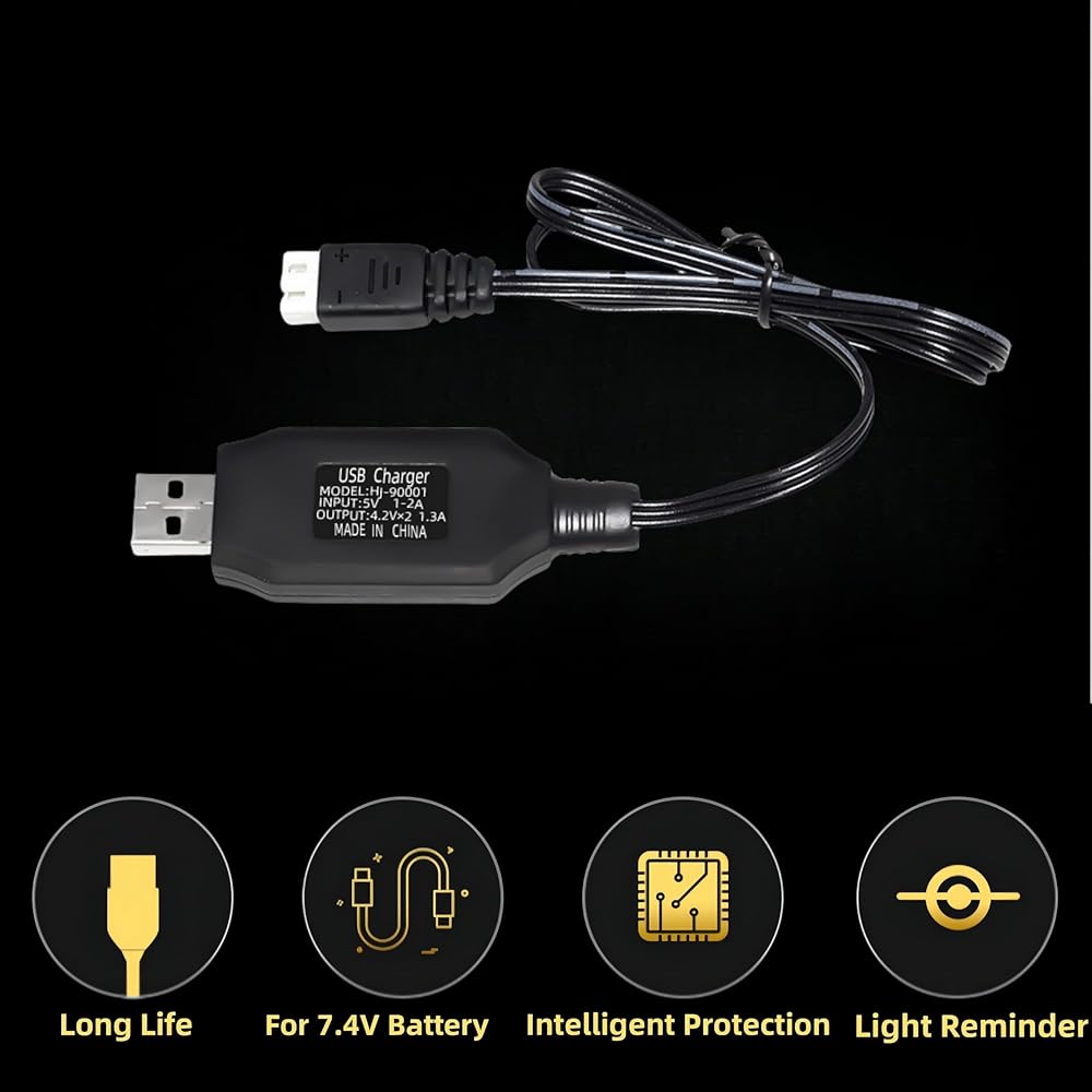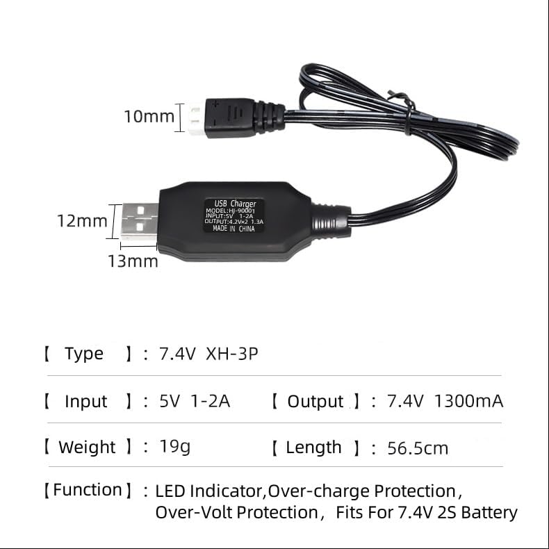 (About the Charger) With 7.4V USB Charger ,you can charge the battery easliy.The 2S charger with over-charge protection, over-volt protection and LED indicator.