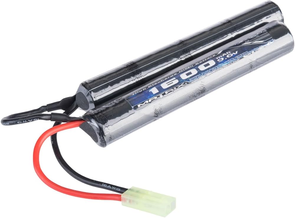 Power your AEG with this reliable Evike Airsoft - Matrix High Output NiMH 9.6V 1600 mAh battery, featuring high-quality matched cells and solid power delivery for consistent performance on the field. Designed with a Small Tamiya connector, it's a popular choice for many Airsoft rifles needing a balance of voltage and runtime. A great option for beginners and intermediate players looking to get the most out of their setup.