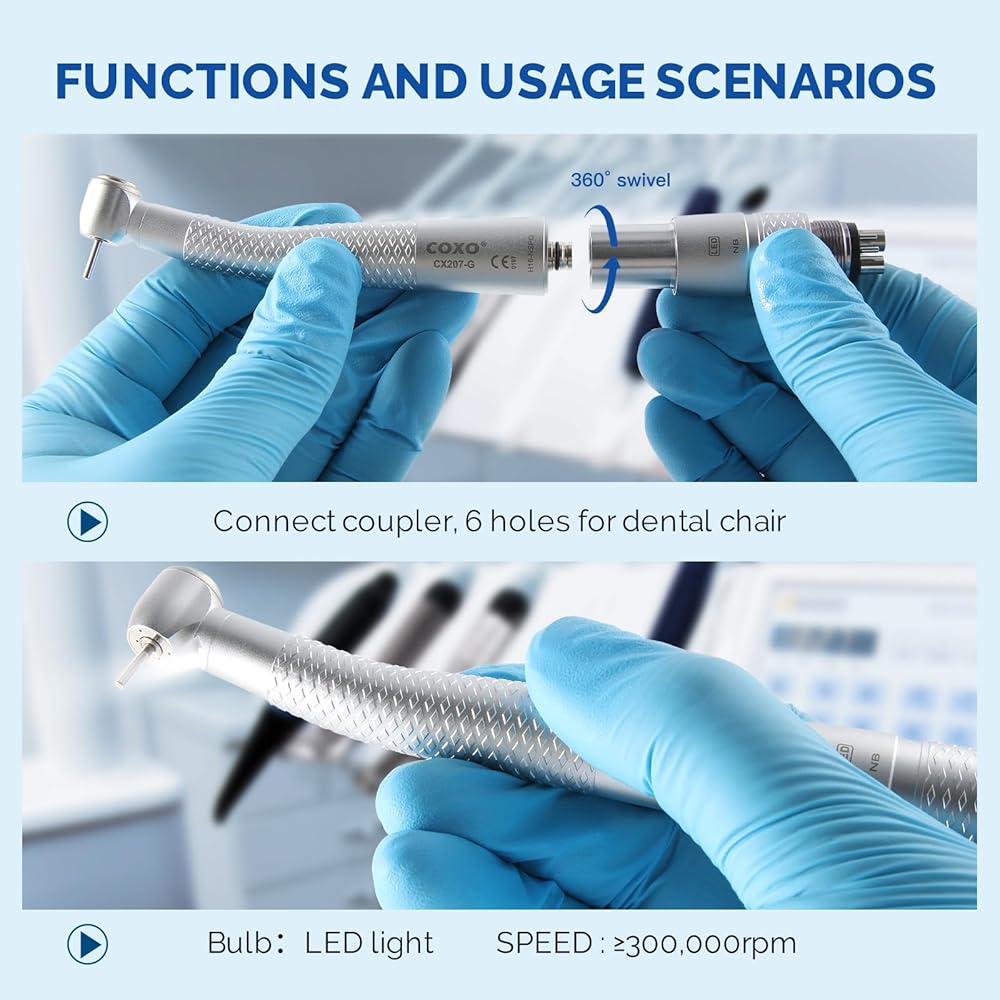 - Fit into NSK or COXO 229-GN 6-hole coupler, no coupling