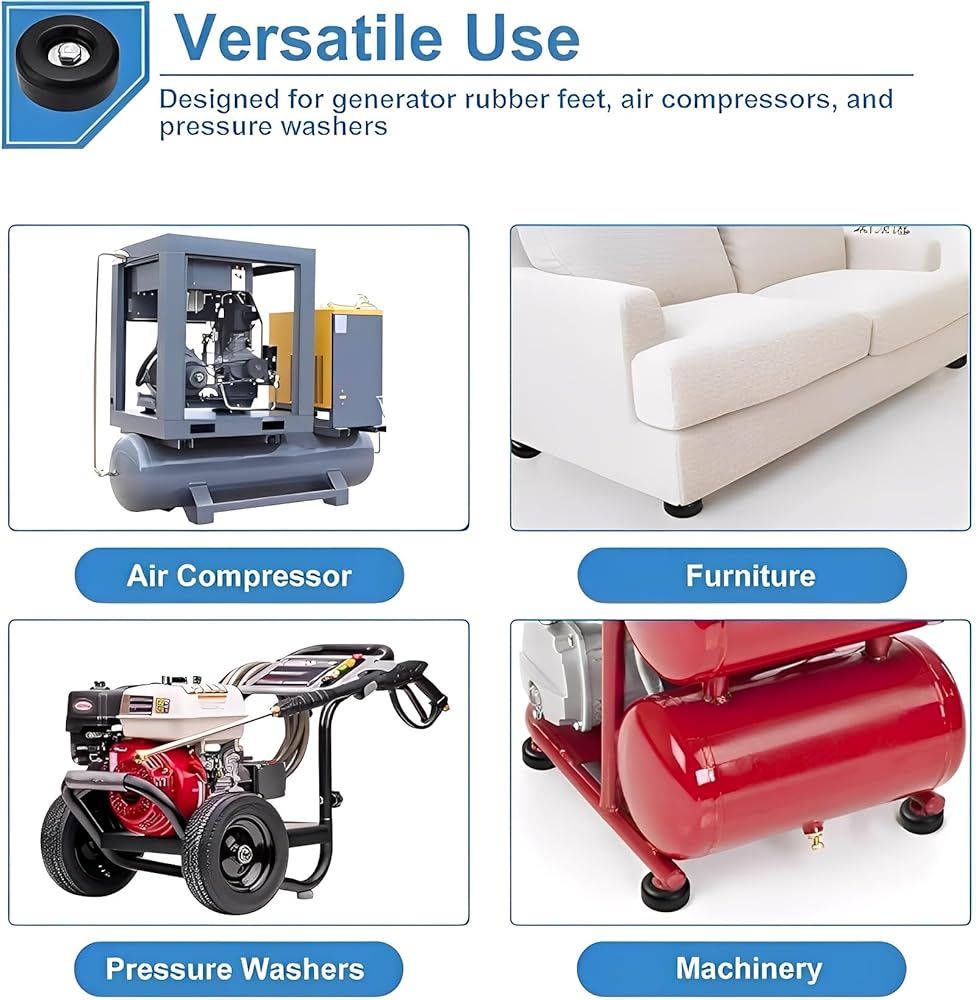 Professional Generator Rubber Feet - Bolt Type Rubber Feet Designed Specifically For Various Power Equipment, Using High-Density Shock-Absorbing Rubber Material And Built-In Pressure Washer Structure, Perfectly Adapted To Generators, Air Compressors And Other Equipment, Providing Super Strong Shock-Absorbing Effect