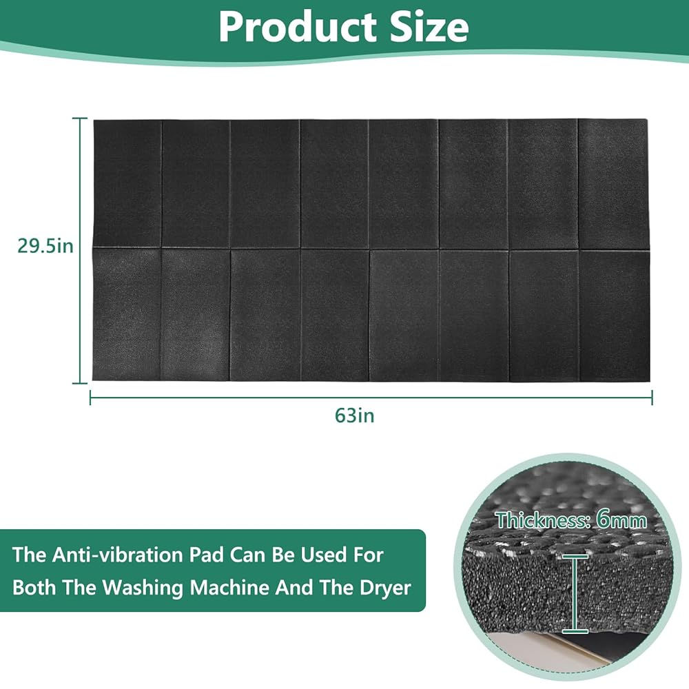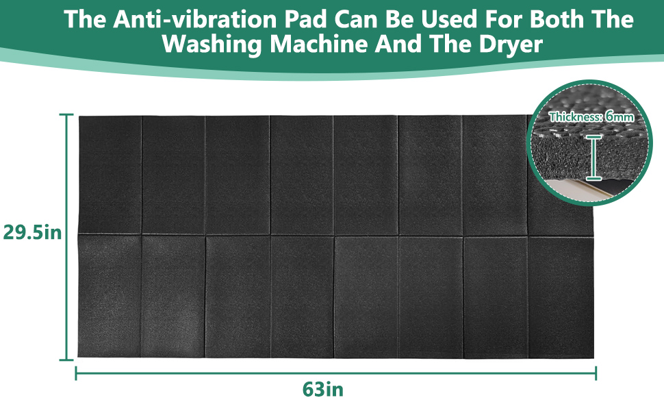 [Perfect Size Plus Foldable Design]This large foldable mat measures 63.0"L x 29.5"W, providing ample space for one washer and dryer combo or two washers. Its textured surface allows for neat folding into a compact size for easy storage and portability.