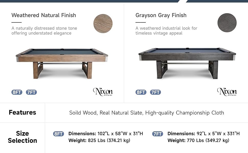 The Bryant Slate Pool Table, with solid wood construction and a classic design, comes with an elegant finish. You can choose from different sizes and colors to customize your own style. It also comes with 1” thick BCA standard Billiard Slates included for a truly flat playing surface. A thirty-two-piece Empire USA Premium Play Kit, as well as a Green Championship Felt, come standard with the order so that you will be able to enjoy the fun as soon as the setup is completed! Item outside dimension is approximately 96x54" with 31"H for the 7FT tables and 102x58" with 31"H for the 8FT tables