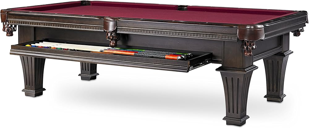 The Talbot 8' Slate Pool Table will be the perfect elegant centerpiece for any classic game room. Its traditional look is enhanced by a tapered leg with a formal detailed molding. A handy pull out storage drawer neatly stores pool balls and accessories.