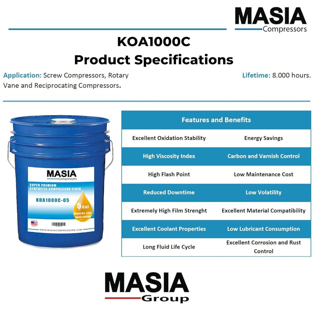- Made in the USA – Manufactured in the United States following established industry manufacturing standards for rotary screw compressor lubricants.