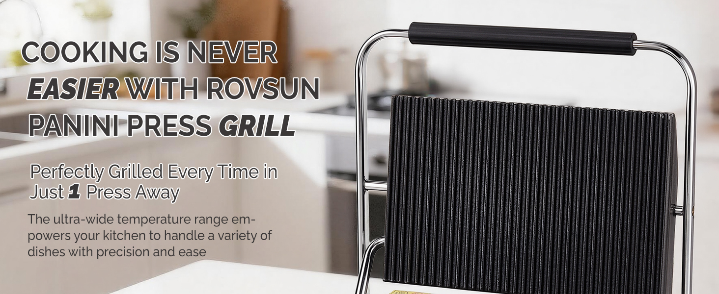 Versatile for Countless Culinary Creations: Unleash your inner chef! The ROVSUN panini press isn't just for sandwiches. Its large cooking area is perfect for preparing a wide variety of dishes, including grilled chicken, fish fillets, vegetables, crispy bacon, pancakes, and even a full breakfast. It's your all-in-one countertop cooking solution.