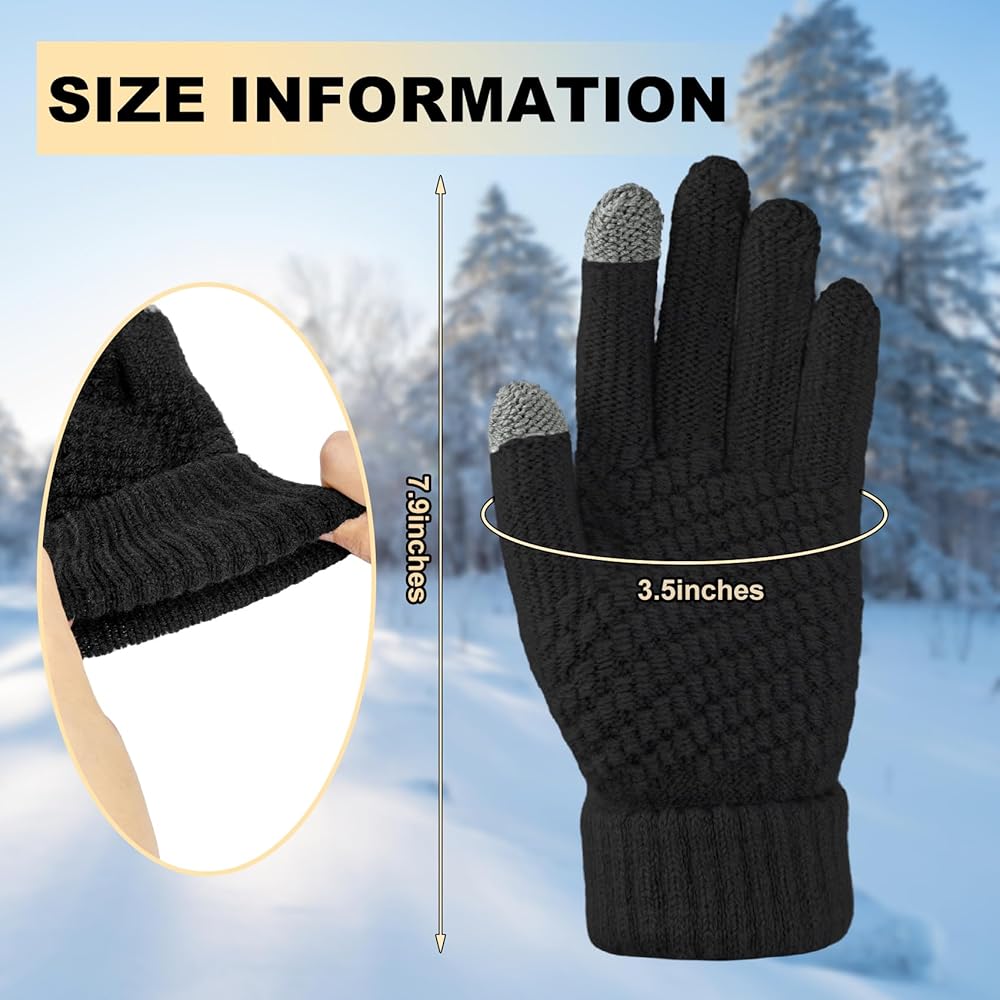 One Size& 3 Pairs- The warm gloves for women have only one size, which can fit for most women. The palm width is about 3.5 inches, and the length is about 7.9 inches. Also gloves with touchscreen fingers are 3 pairs in 1 package, which is very cost effective.