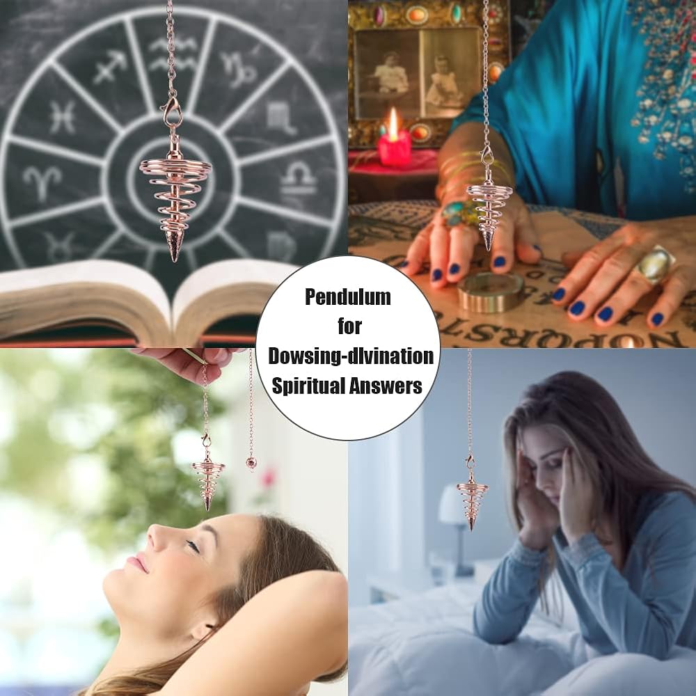 Colors: Gold (dowsing rod), Rose Gold (spiral pendant)