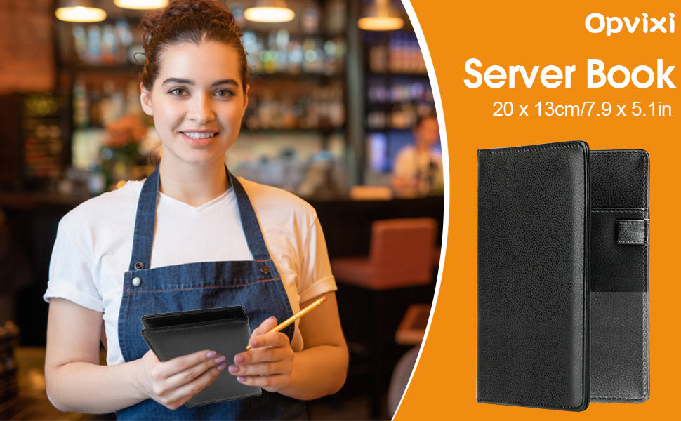 Waterproof & Easy to Clean: Waitress server book is made of PU leather with tight stitching, the surface is waterproof, scratch-resistant and easy to clean